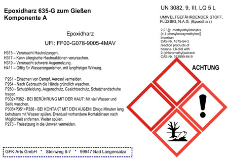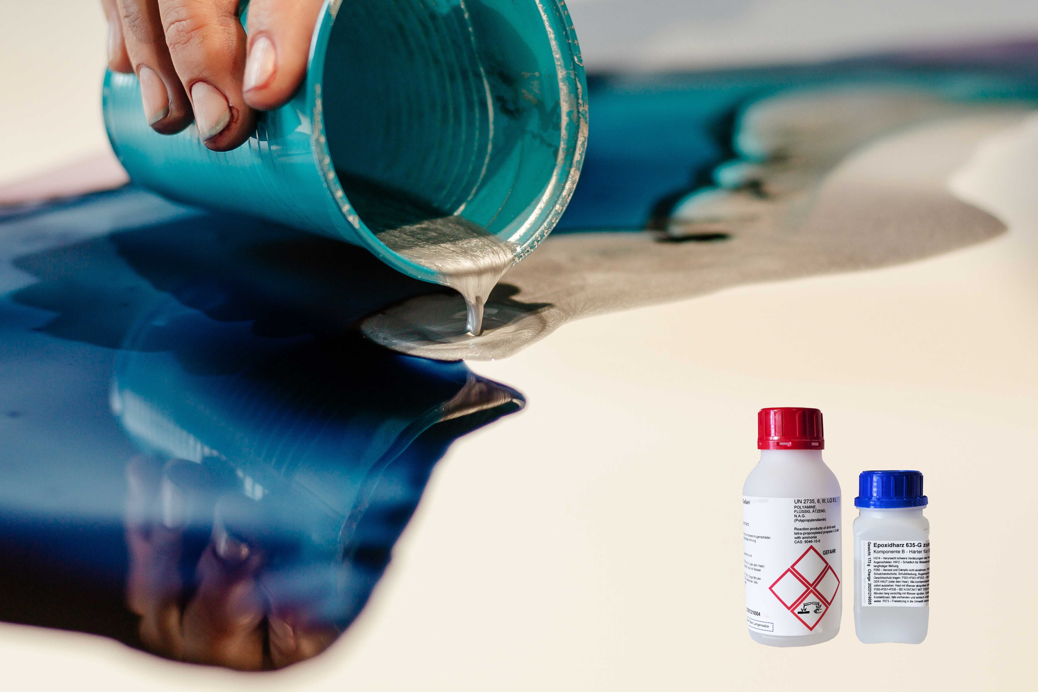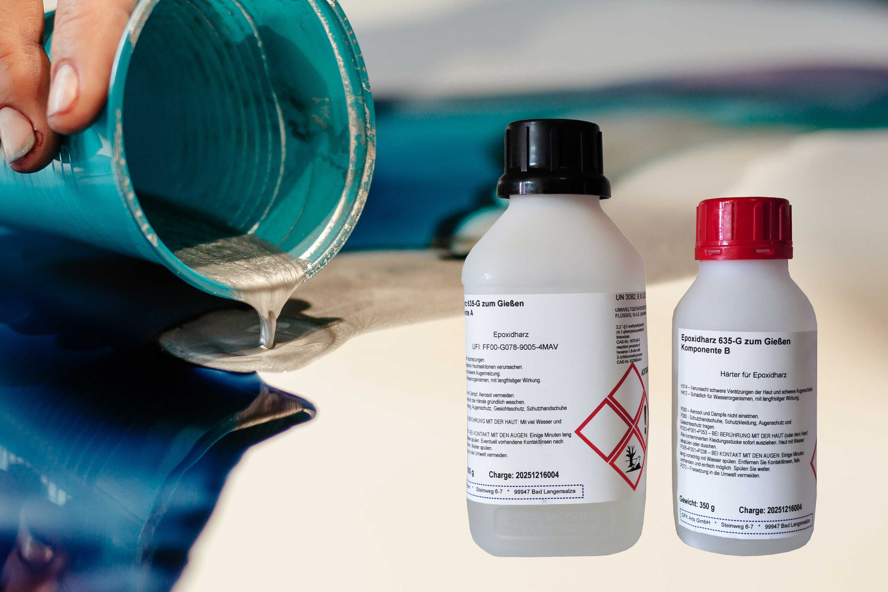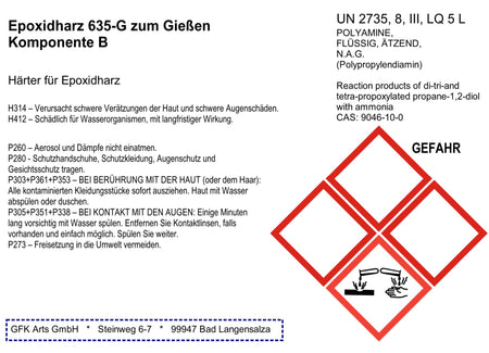 - Mischungsverhältnis Epoxidharz 635-G : 100 Teile Harz: 35 Teile Härter