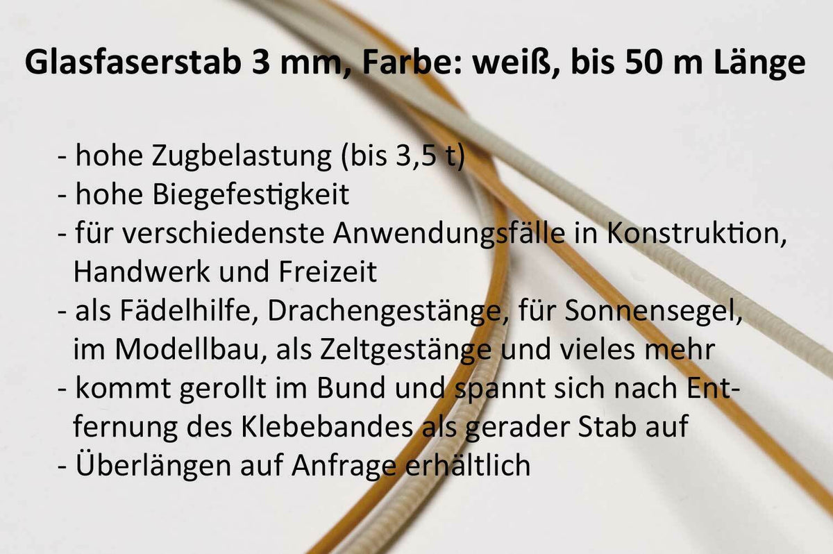 Glasfaserstab Ø 2 mm & 3 mm bis 50 lfm Rundstab Fiberglas Modellbau Zelt Drachen
